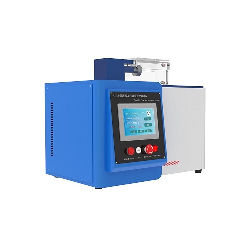 測定人工血(xuè)管薄膜破裂強度,用平環形夾具將被測試(shì)假體樣品的一片固定在彈性薄膜上,並在薄膜的下麵增加壓力(lì),直至樣品破裂。